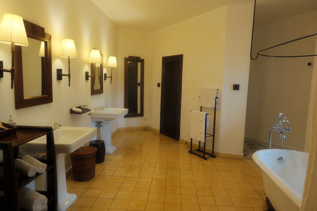 During my visit, I stayed in Villa 3, known as “The Botanist’s Villa.” While I had originally booked a villa suite, I was upgraded to a notably spacious suite featuring a second room on the upper floor. The design, particularly in the bathroom, carries an unmistakable French influence that anchors the space in its history. Even with the heaters running, a slight chill remains at night (a characteristic part of the city’s charm that defines life in these high-altitude retreats).